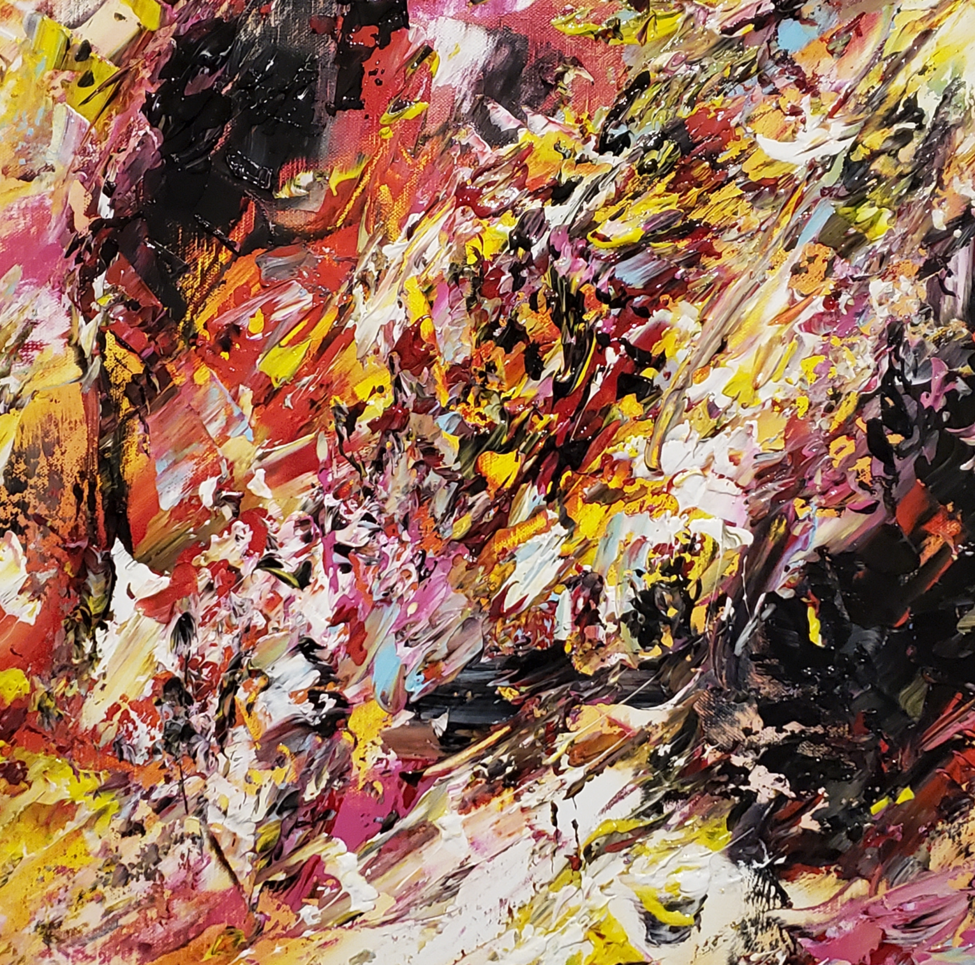 Plus tard un ami m'a donné l'occasion de réaliser mon premier tableau. Le sentiment de liberté face à la toile m'a tout de suite fasciné, captivé, enchanté. La peinture abstraite ouvre un espace au travail intuitif et au lâcher prise.